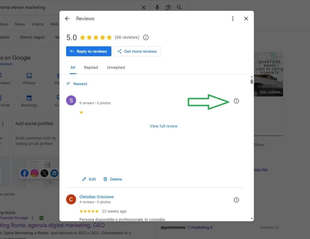 Segnala la recensione come proprietatiodel tuo Google Business Profile